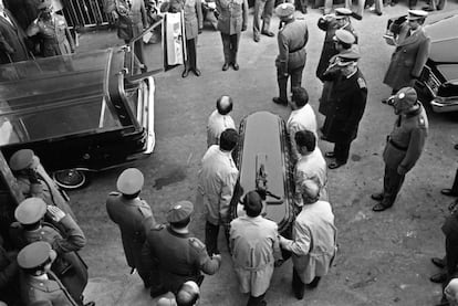 El féretro del dictador sale del Hospital de La Paz. Tomás / Europa Press / Contacto (Tomás / Europa Press / Contacto)