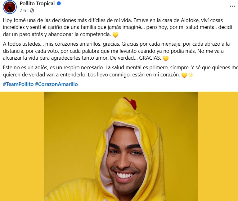 Pollito, por su parte, asegura que este solo es un descanso necesario y promete volver a compartir contenido con la fuerza y autenticidad que lo han convertido en un favorito del público latino.