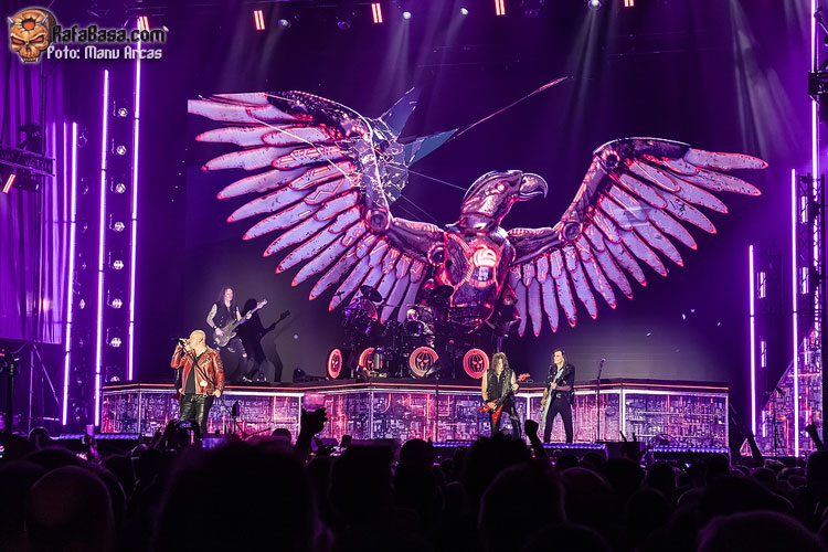 De entre todas las conversaciones arquetípicas en el mundo del METAL, hay un debate que trasciende generaciones: los repertorios de HELLOWEEN. Todos y cada uno de los que somos fans, tenemos uno, particular y deseado, a la par que imposible de ser materializado. Y en esta gira, la cosa no iba a ser menos. Se hace complejo, además, tener que abarcar no sólo la celebración de cuarenta años de historia, con la presentación de su último disco, “Giants and Monsters”. Personalmente, habría prescindido de tanta balada y cambiado algunos temas por otros que me gustan más a mí. Sin embargo, una vez habiendo vivido el show al completo y en toda su extensión, reconozco que el set, tal y como está planteado, funciona a las mil maravillas. Todo ello reforzado por un espectáculo de luces y pantallas excelente, al servicio de cada una de las canciones que lo componen.