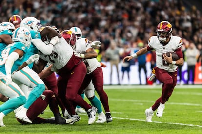 Uno de los momentos del partido entre los Miami Dolphins y los Washington Commanders en el Santiago Bernabéu.