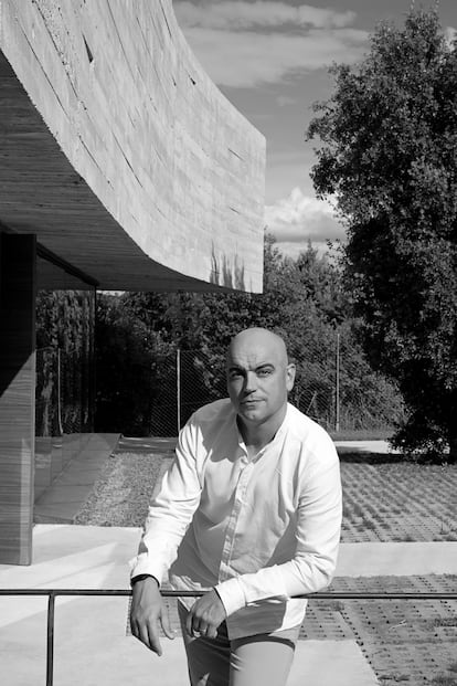 Antes, cuando esto era solo campo, aquí había dos encinas. Una vista asombrosa también, al mirar al norte, a la sierra de Guadarrama y su embalse de Pedrezuela; al sur, una serie de viviendas con pinta de segunda residencia a lo largo de una calle llamada Roble. Pero, sobre todo, había dos encinas. Cuando uno empieza a visualizar una construcción en un lugar concreto, cuando toca decidir con qué y de qué forma relacionarse con el entorno, empieza por estas cosas. Moisés Royo (Barcelona, 44 años) se fijó en ellas cuando empezó a imaginar este proyecto, el número 472, de Muka Arquitectura, la firma que fundó hace 18 años. Decidió dejarlas donde estaban y concebir la obra a su alrededor: lo que siguió es hoy su trabajo quizá más celebrado, la Casa Roble, que acaba de ser nominada al Premio Mies van der Rohe, una vivienda de hormigón a lo largo de tres alturas de ascendente intimidad, en la que el límite entre interior y exterior está difuminado, un triunfo del empleo de materiales e ideas contundentes sometidos a concesiones delicadas; un ejemplo de cómo la arquitectura puede ser, en fin, en sí misma lo que decore un paisaje.