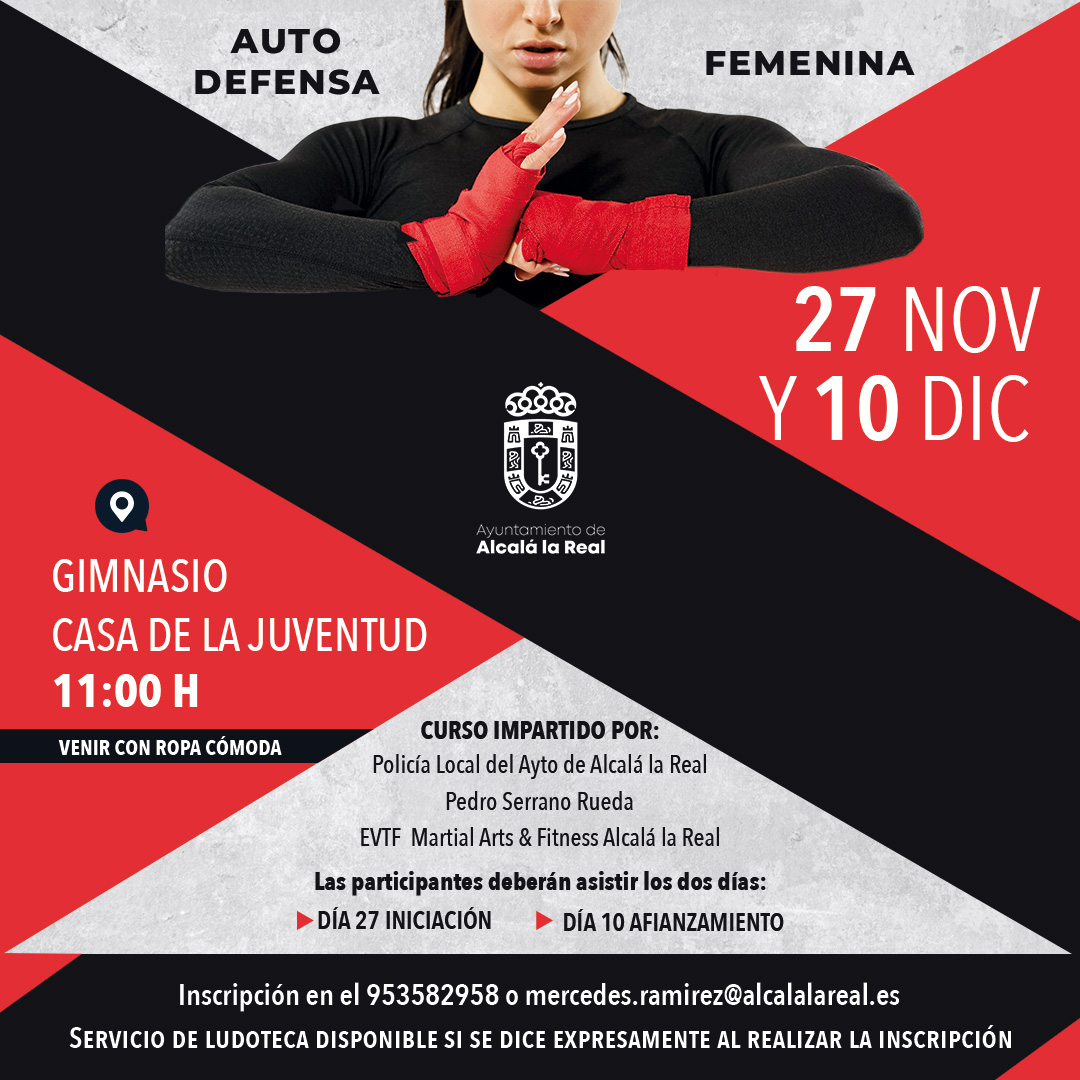 Para complementar esta formación, se impartirá un curso de autodefensa los días 27 de noviembre y 10 de diciembre a las 11:00 en el gimnasio de la Casa de la Juventud, dirigido además de a las víctimas activas, a toda mujer que quiera inscribirse.