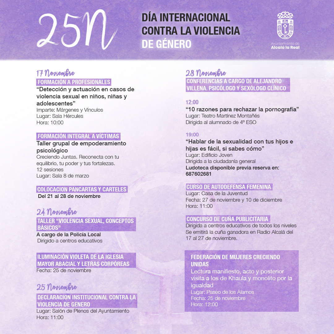 Las actividades incluyen formación, talleres, concursos y un acto institucional para reforzar el compromiso contra la violencia de género