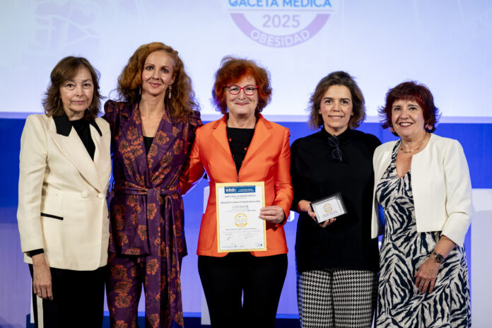 La Unidad Multidisciplinar de Obesidad del Hospital Universitario Fundación Jiménez Díaz (FJD) fue reconocida en los Premios Best in Class (BiC) 2025 en la categoría de Obesidad. El galardón lo recogió Clotilde Vázquez, jefa de Servicio de Endocrinología y Nutrición de la FJD, acompañada de Teresa Montoya, jefa asociada, y Alicia Melchor, enfermera coordinadora de Educación en Obesidad, de manos de Celia García Menéndez, directora general de Humanización, Atención y Seguridad del Paciente de la Comunidad de Madrid, y Gema Medina, vicepresidenta de la Sociedad Española para el Estudio de la Obesidad (SEEDO).