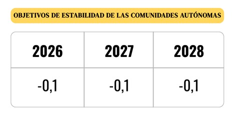 Para los próximos tres años, el objetivo de estabilidad autonómico será del -0,1%. En la medida en que el objetivo de estabilidad es el mismo para todo el período y que los recursos procedentes del Estado seguirán aumentando, las comunidades tendrán margen para incrementar su inversión en sanidad, educación o vivienda.