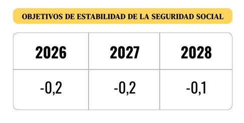 Por último, la Seguridad Social tendrá una senda del -0,2% para 2026 y 2027, mientras que para 2028 deberá reducir su déficit al -0,1%.