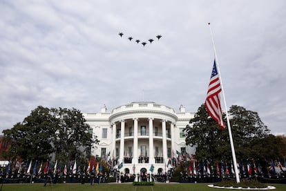 El presidente de Estados Unidos, Donald Trump, y el príncipe heredero y primer ministro saudí, Mohammed bin Salman, observan un desfile aéreo militar, este martes en Washington. Kevin Lamarque (REUTERS)
