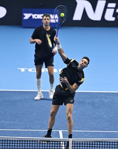 Granollers volea, con Zeballos a su espalda, durante un partido en la Copa de Maestros de Turín.ALESSANDRO DI MARCO (EFE)