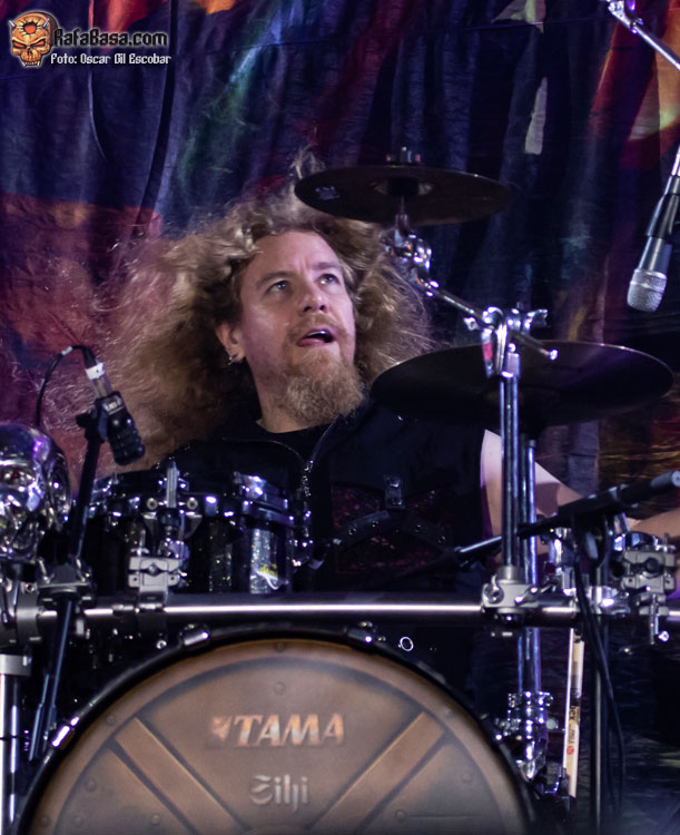 Una vez más, las pantallas laterales y la central nos avisan de que algo muy gordo está a punto de suceder…¡joder!, ¡no me esperaba «We Burn»! Entre otras cosas, porque no quise mirar el set antes del concierto. El clásico tema de apertura del «The Time Of The Oath» llevaba muchos años sin sonar en directo y Andi Deris lo llevó al límite mientras llamaradas salían del escenario, y él hacía uso de un lanzallamas cada vez que cantaba aquello de «Weeeeee Buuuuurn!». Daniel Löble bordó las imposibles baterías de Uli Kusch, sonando la banda súper compacta, y es que la concentración no está reñida con la diversión. Weikath estaba acertadísimo con su Flying V azul (que no sé si es la misma que tenía decorada de calabazas giras atrás), pero es que los solos por parte de Sascha y Kai sonaban finos, finos. Uno de mis momentos favoritos de la noche, sin duda…bueno… ¡uno de tantos y me repito! Porque cuando empieza a sonar «Twilight Of The Gods» adornada por motivos arcade en pantalla, es literalmente imposible que no se te humedezcan los ojos y se te encoja el corazón comprobando y viviendo en primera persona que Kiske todavía la canta solo… ¡y de qué manera!. Un golpe de nostalgia, un momento imborrable, impagable que solo una banda al 100% de sus posibilidades como HELLOWEEN esta noche, podía recrear. Creedme… solo veía caras de felicidad en el recinto ante semejante derroche de medios a todos los niveles. Mágico.