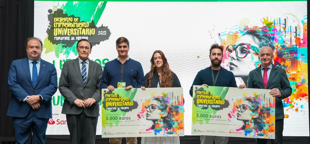 A continuación, en el marco de este foro celebrado en la Universidad de Cádiz, se han entregado los Premios de Emprendimiento Universitario 2025, patrocinados por el Banco Santander, con los que se ha reconocido a los dos proyectos empresariales universitarios más innovadores por su capacidad de impacto y de transformación económica y social. Los proyectos galardonados han sido Flamingo Biomechanical Lab, de la Universidad de Córdoba (UCO), y M2R, de la Universidad Pablo de Olavide (UPO), que han recibido un premio de 3.000 euros cada uno, además de un diploma acreditativo, acceso preferente a eventos de referencia con corporaciones y startups y alojamiento empresarial gratuito en las instalaciones de Andalucía Emprende.