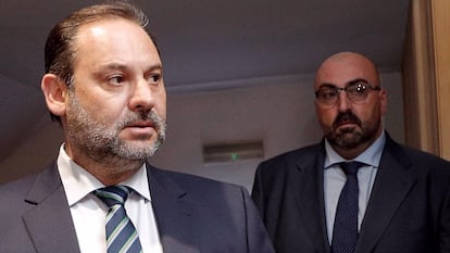 Koldo García (d) junto al entonces ministro de Fomento, José Luis Ábalos (i) en agosto de 2019 en Madrid.Manuel Bruque (EFE)