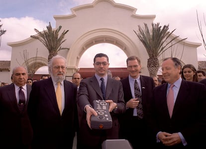 Inaguración en 2002 del parque temático de la Warner Bros, en San Martín de la Vega. En la imagen el presidente regional, Alberto Ruiz Gallardón, inaugura el parque en presencia entre otros del alcalde de Madrid, José María Álvarez del Manzano, y del delegado del Gobierno, Eduardo Cortés. Gorka Lejarcegi
