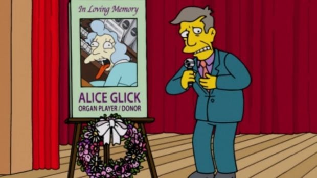 Con una emisión en antena de más de 35 años, no resulta nada extraño observar cómo algunos de los personajes de Los Simpson reciben sepultura. Desde muertes sorprendentes como la de Maude Flanders, hasta presentaciones y despedidas de un sólo episodio como el fallecimiento de Frank Grimes. Ahora, la ficción creada por Matt Groening pone fin a un rol secundario que llevaba apareciendo esporádicamente en la serie desde 1991: Alice Glick ha muerto.