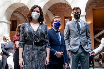 Piqué posa con Isabe Díaz Ayuso y José Luis Martínez-Almeida durante un acto de 2021 en Madrid.Daniel Gonzalez (GTRES)
