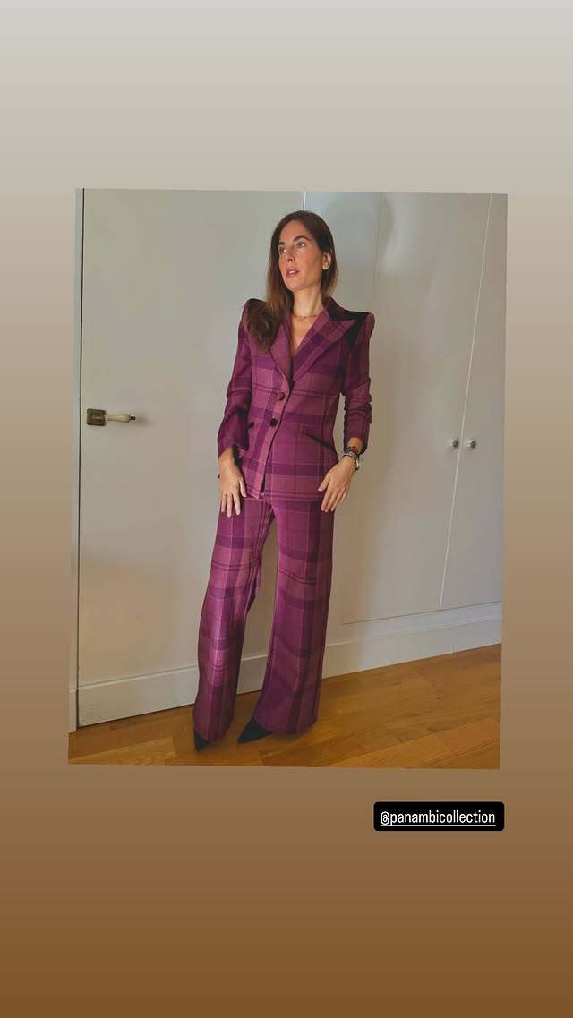 Se trata de un conjunto de blazer y pantalón en color buganvilla y burdeos con un sutil estampado de cuadros escoceses confeccionado en lana merino. La pieza, firmada por Panambi Collection, destaca por sus hombreras XXL y unas maxi solapas que elevan el look a lo sofisticado. El estampado, como decíamos, va en perfecta sintonía con la estética navideña, muy en clave invernal y totalmente acorde con un estilismo formal. Además, lo combinó con unos stiletto de punta y tacón bajo en negro.