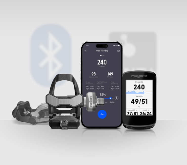 Se conectan por ANT+ y Bluetooth a cualquier ciclocomputador (Garmin, Wahoo, los propios de Magene) y funcionan con Zwift, TrainerRoad y Strava.