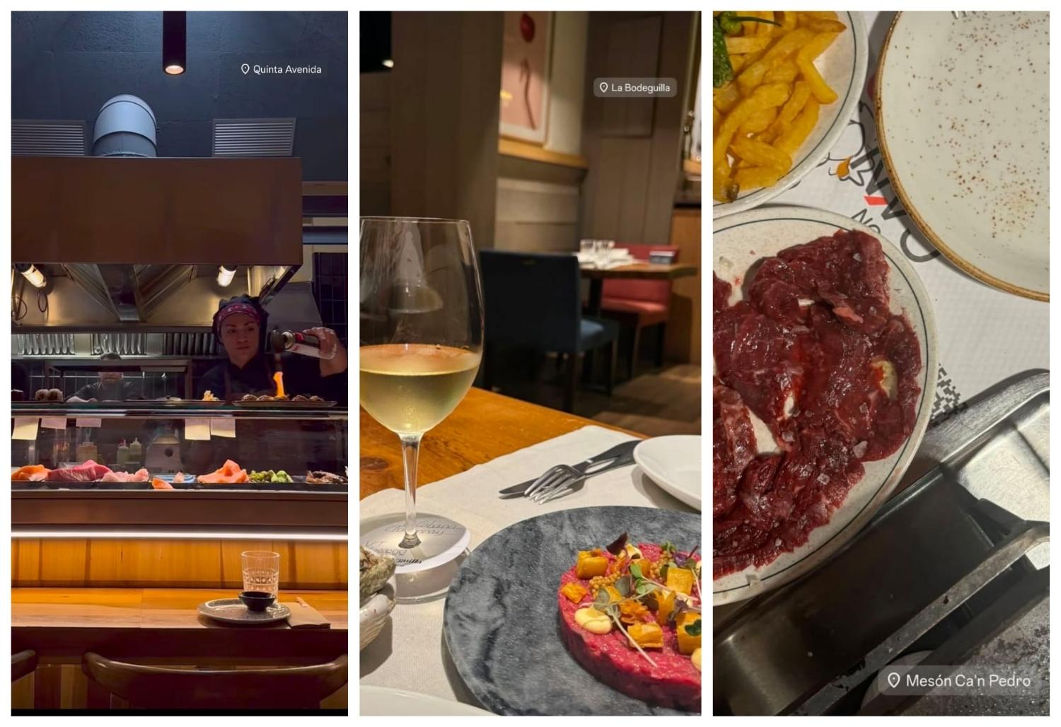 Tres de los restaurantes compartidos por Gilbert en su Instagram.