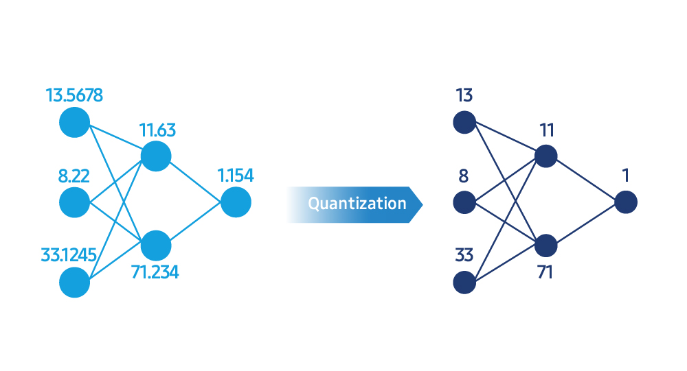 Una caída en la precisión numérica durante la cuantificación puede reducir la precisión general de un modelo. Para equilibrar la velocidad y la calidad del modelo, Samsung Research está desarrollando algoritmos y herramientas que miden y calibran de cerca el rendimiento después de la compresión.