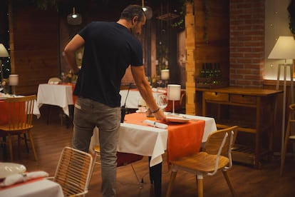 En cuestión de minutos, Sobera se enfunda su característico traje azul y se coloca en su puesto de trabajo: la barra del bar. Sobera es maître, presentador y guardián del programa desde que se empezó a emitir el 17 de abril de 2016, adaptando la idea original del canal británico Channel 4. Su papel, recibiendo a los daters y charlando con ellos, es clave para que se vuelquen en la cita. “España es un país con pocas riquezas, pero una de ellas es su gente. En la diferencia somos todos iguales”, sentencia. Su historia con el programa, su relación laboral más longeva, también es, a su manera, una historia de amor. “Llegar aquí fue absolutamente liberador, necesitaba un cambio radical. Yo estaba encasillado haciendo concursos con el famoso movimiento de cejita”. Antes había sido actor e incluso profesor de Derecho. “Fijate, ya allí me interesaba más en dar voz y protagonismo a los estudiantes para que se sintieran importantes”, añade. Es lo que hace en First Dates, cualidad que considera esencial: “Cada soltero me interesa de verdad y esa curiosidad no se puede fingir. Si no, no funcionaría”.
