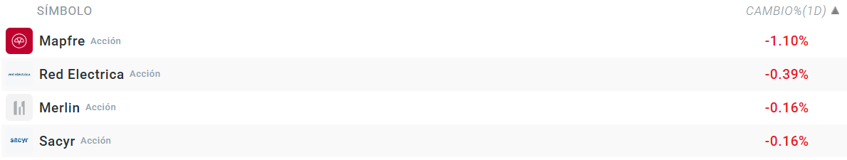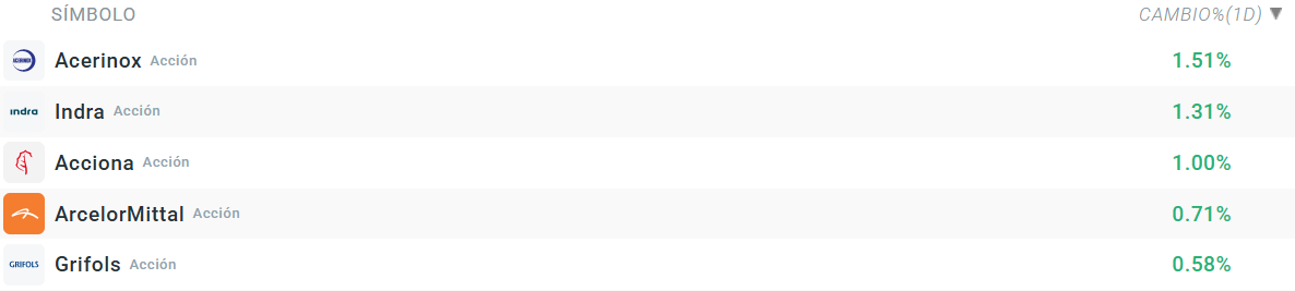 Las acciones de Acerinox están anotándose subidas y siguen de dulce después de que ayer se apuntara a que la UE pretende negociar los aranceles al acero que Estados Unidos impone a la región. Por su parte, las acciones de Indra están en la parte alta de la tabla, pero hay que apuntar que están teniendo un comportamiento algo errático en las últimas sesiones por las negociaciones de paz en la guerra Ucrania-Rusia. Otro valor en la parte alta es Acciona, que según informa Expansión, la compañía estaría negociando la venta de los activos eólicos que posee en Galicia. Recordemos que Acciona fue castigada tras presentar sus últimos resultados por un desempeño del segmento de energía que decepcionó.