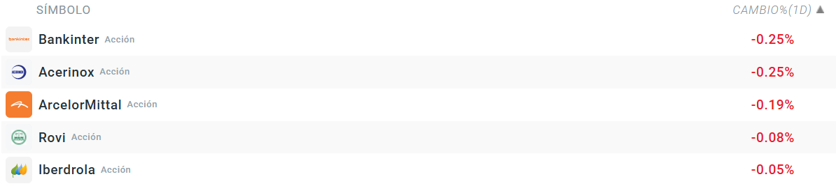 Las acciones de Bankinter son las que más caen del selectivo español, pero a medida que avanza la sesión el Ibex 35 se está animando y entrando en terreno positivo con muy pocos valores en la parte baja de la tabla.