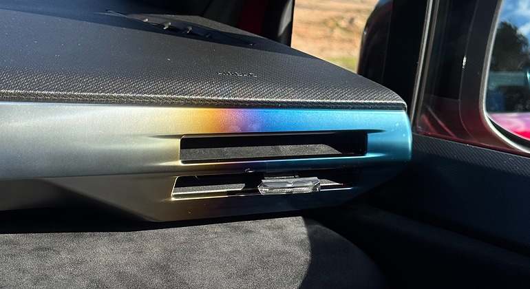 El elemento que más llama la atención es el tono que tienen las salidas de aire, similar al del titanio quemado con esas tonalidades naranjas, moradas y azules, a cargo de la directora de proyectos de diseño española, Paula Fabregat. NG