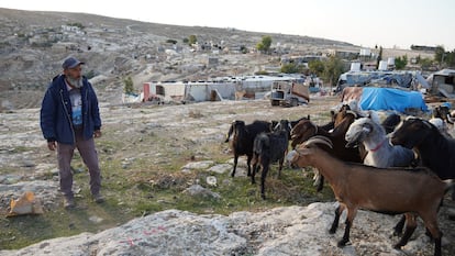 Gazem Hamamdi, con su ganado en la aldea de Jirbet Al Mufaqara, en Cisjordania, este jueves. Antonio Pita