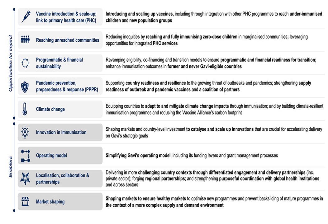 - En junio de 2024, la Junta Directiva de Gavi aprobó su nueva estrategia quinquenal, denominada Gavi 6.0, que regirá el sexto período estratégico de la Alianza (2026–2030).