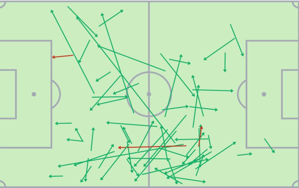 El inglés fue de menos a más, aportó criterio con balón y entendió cuál era el guion de partido que favorecía a su equipo. Completó 63 pases con un 95% de acierto, la mitad de ellos en campo contrario.