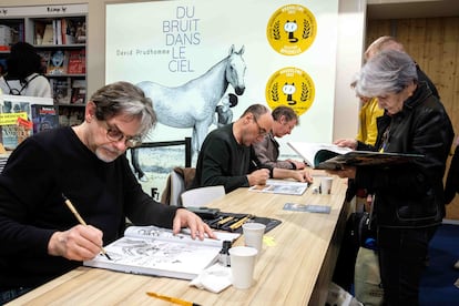 Puesto de editoriales y autores firmando ejemplares de sus cómics en el Festival Internacional del Cómic de Angulema en 2022.Andia (Andia/Universal Images Group via Getty Images)