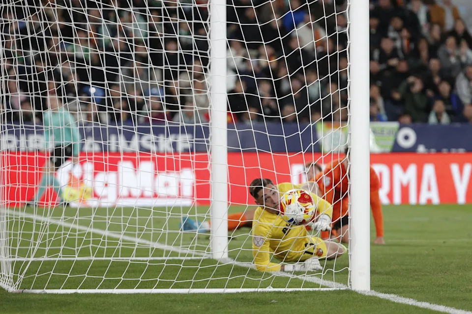Dos de los jugadores recién incorporados lo intentaron, pero los lanzamientos de Hugo Esteban y Diego Martínez se marcharon fuera. Riquelme era el líder verdiblanco en la fría y húmeda noche valenciana. Hacía el juego y lo repartía. El futbolista del Betis cedió para Pablo García, pero el cabezazo del canterano fue directo a las manos de Dolz.
