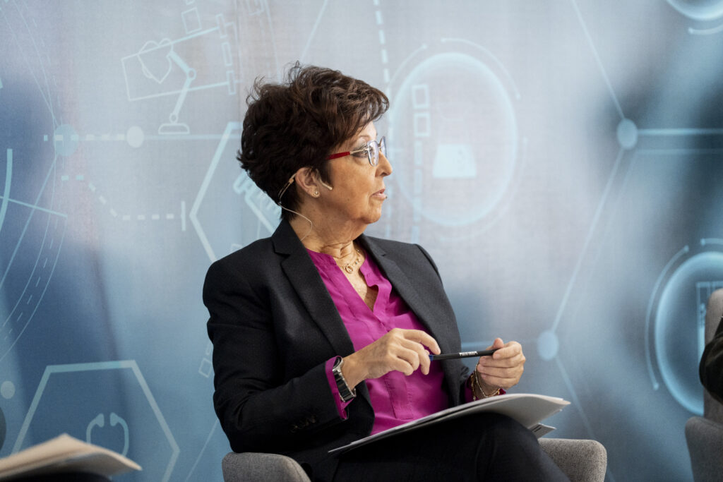 Navarro (Ponencia de Vacunas), Márquez (Extremadura), Andradas (Comunidad de Madrid) y Gil (URJC), durante el debate sobre VRS en el IX Foro de Salud Pública. Foto: Jon Imanol Reino.