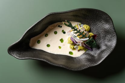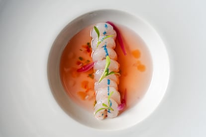 A principios de este 2025 decidió que había llegado el momento de lanzarse con su propio restaurante. Buscó local, lo remodeló y el 9 de abril abrió sus puertas con un equipo —tres personas en cocina, tres más en sala— que no ha cambiado desde entonces. Allí sirve en platos su propio viaje personal, con influencias de los países que ha visitado pero con especial atención a la gastronomía del País Vasco y la de Ecuador, siempre con toques malagueños. Ahí entran un gazpachuelo de vieiras con judías verdes, yuca y papada ibérica (26 euros) o un bikini vasco con bizcocho de txistorra, queso Idiazábal y piparras (12 euros). Hay quisquillas con salsa roja y pipirrana (24 euros) o lubina con hinojo en cuatro texturas (27 euros). Todo ello en platos donde la belleza también juega: “Instagram me da igual, pero me hace feliz sacar los platos bonitos, perfectos. Primero se come por los ojos”. El ceviche de pescado con salsa de maní (23 euros), el pan de yuca (10 euros), el chancho (27 euros) —con chicharrón, oloroso y mote, un tipo de maíz— o el bombón de locro (4,50 euros) —una especie de croqueta redonda con papa y aguacate— permiten conocer ingredientes y sabores clásicos ecuatorianos. “Parece que la cocina de mi país es solo ceviches, pero hay mucho más. Y por eso dejo los nombres de los ingredientes tal y como se conocen allí, para que la gente pregunte y vaya conociéndola mejor”, destaca Paulson, que ofrece la posibilidad de comer o cenar a la carta o en un completo y exquisito menú degustación (90 euros), hasta el momento la principal preferencia de sus comensales. “Así, si les gusta algo en especial, pueden volver a disfrutarlo a la carta”, insiste la chef, que ha instalado unas mesas altas para que se pueda disfrutar de un vino —su bodega tiene unas 60 referencias por ahora— o un cóctel con un par de platos, en un formato más informal.