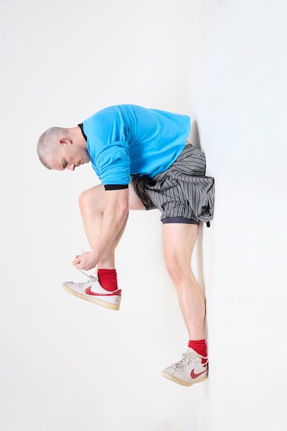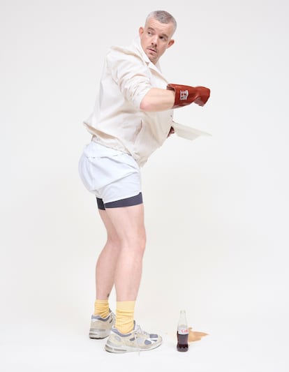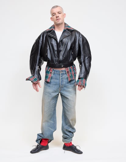 Rusell Tovey lleva chaqueta Courrèges y ropa interior Sunspel. Las zapatillas son suyas y los calcetines del estilista.Antonio Macarro