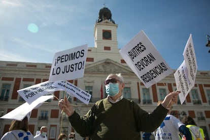Manifestación de Marea Residencias en la Puerta del Sol de Madrid, en 2020.santi burgos