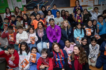 Marcus Rashford aparece rodeado de niños en la Escola Vedruna, en pleno corazón de Ciutat Vella. Le esperan con gran expectación, enfundados en camisetas del Barcelona. Entre preguntas inocentes, pero sin filtro, Rashford escucha con calma, sonríe y juega. Desde una ventana le lanzan cartas mientras él se deja marcar goles en el patio. La escena destila inocencia, pero también esperanza en un barrio diverso y golpeado por la vulnerabilidad social, donde la Fundació Barça impulsa programas como Escoles Sense Violència. Más tarde, visita también el Centre Cívic El Submarí, donde la fundación azulgrana impulsa Esport a la Comunitat, un proyecto con el objetivo de mejorar la calidad de vida de niños y familias a través de actividades socioeducativas y deportivas capaces de abrir oportunidades donde a menudo escasean. “Cuando era niño, la mayoría de las personas a las que les decía que quería ser futbolista, ni siquiera me escuchaban. En mi casa siempre me motivaron. Así que ahora me toca transmitir eso a los niños”, explica. Para Rashford, la colaboración solidaria no es ajena. Ya en Mánchester se enfrentó al gobierno británico para que los niños no pasasen hambre durante la pandemia. En él resuena la historia de su vida.