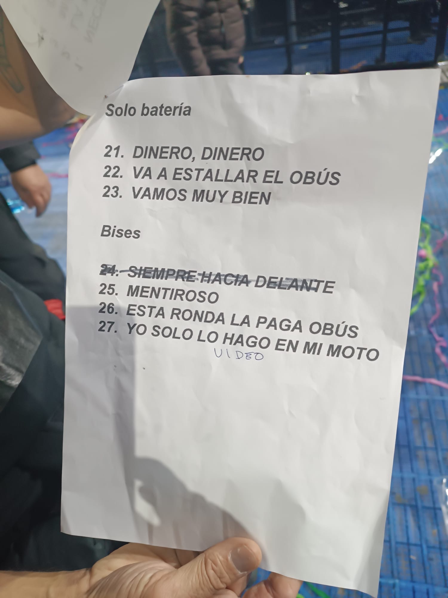 Tras este cuerpo principal llegó un breve solo de batería, con baquetas fluorescentes y protagonismo absoluto para Fernando, que mantuvo arriba la energía de Vistalegre y sirvió de puente hacia la traca final. A partir de ahí, OBÚS remató con una sucesión de himnos: «Dinero, dinero», «Va a estallar el Obús» y «Vamos muy bien» convirtieron el recinto en un coro unánime. Fortu pidió apagar las luces y el pabellón se iluminó únicamente con cientos de móviles, dejando una de las imágenes más potentes de la velada.