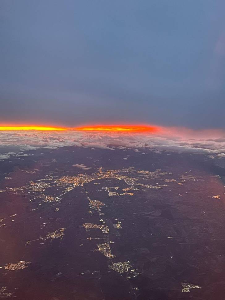 Una imagen aérea tomada al amanecer ha ofrecido una vista singular de Granada y de su Área Metropolitana, captada desde un vuelo comercial que cubría la ruta Málaga–Santander.