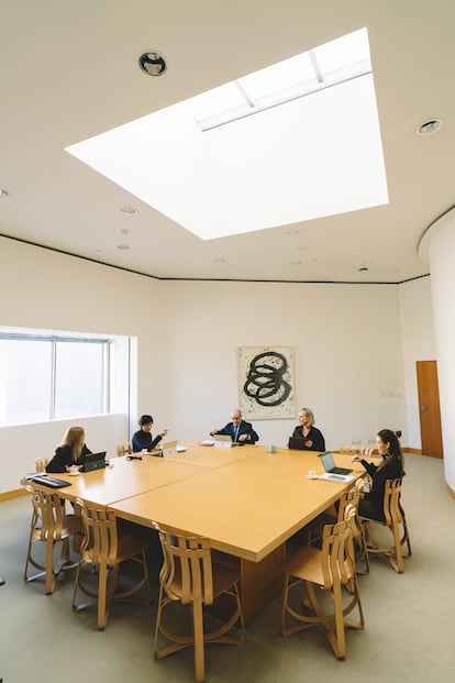 La directora se reúne cada miércoles con su comité de dirección. Hoy asisten a la cita el responsable de Desarrollo, Xabier Pérez-Gaubeka; la directora de Comunicación e Imagen, Alicia Martínez; la directora de Recursos Humanos y Calidad, Garbiñe Urrutikoetxea, y la curator (conservadora) Lekha Hileman. Falta quien hasta hace poco fue director de Exposiciones y Conservación, Daniel Vega, que dejó la nave Guggenheim en septiembre tras ser fichado por la Fundación Banco Santander para dirigir el proyecto Faro Santander, un gran centro cultural en el centro de la capital cántabra cuya apertura está prevista para mediados de 2026. Su relevo aún no ha sido decidido.
