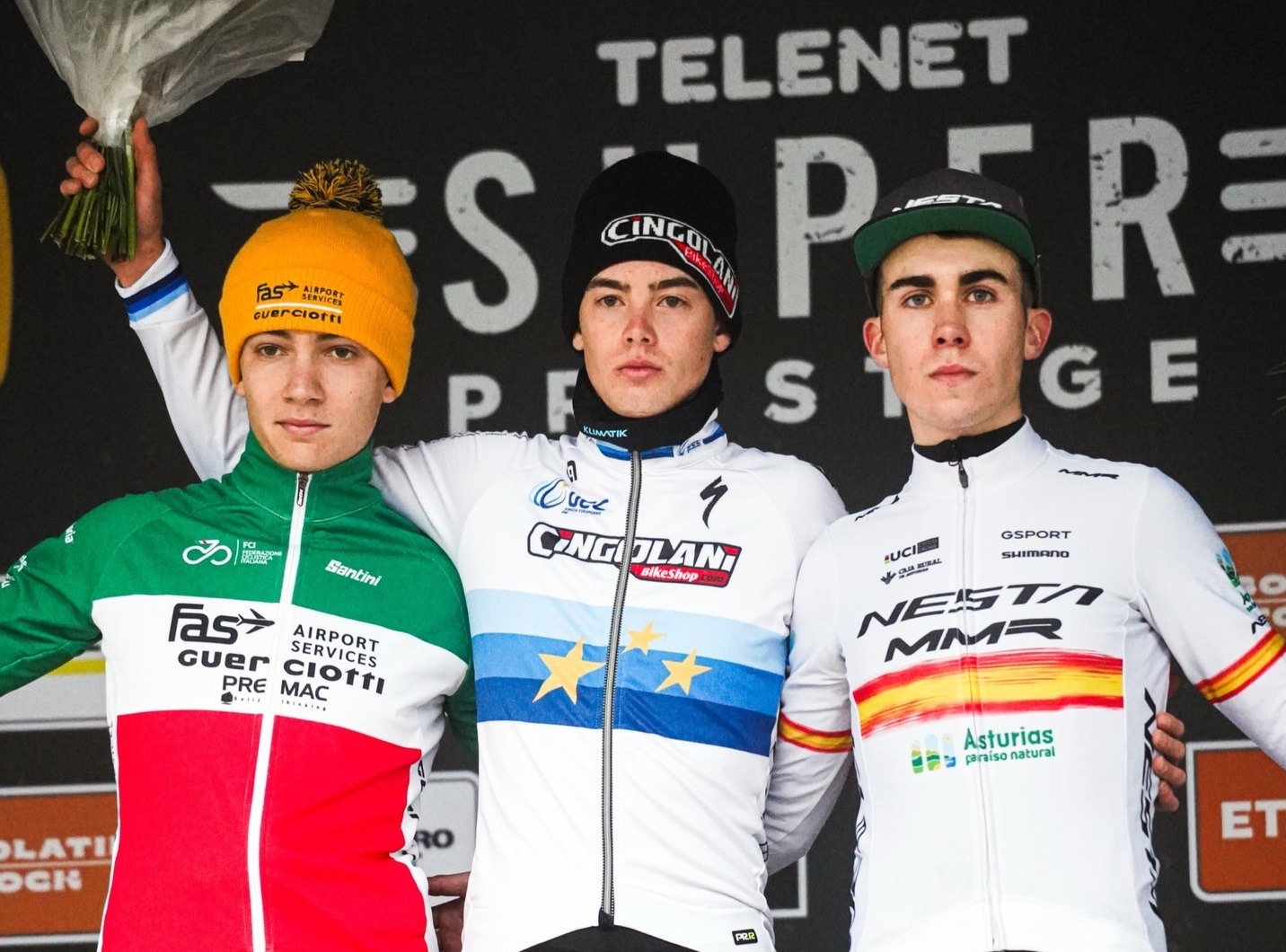 22 diciembre. Benjamín Noval ha logrado este lunes su primer podio de la temporada en Bélgica al acabar segundo en el Plage Cross de Hofstade, perteneciente al Trofeo X2O. El asturiano de categoría junior comienza de forma inmejorable su gira navideña, puesto que el pasado domingo logró ser cuarto en la Copa del Mundo de Koksijde. En esta ocasión solo quedó por detrás del belga Giel Lejeune y pudo batir al sprint a su compatriota Lars Corsus en la pelea por el segundo puesto. Es el segundo podio de su carrera en Bélgica, ya que en 2024, también un 22 de diciembre, logró ser segundo en la Copa del Mundo de Zonhoven en su primer año como junior.
