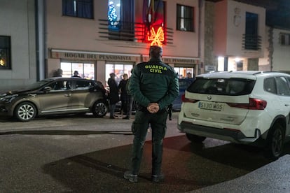 La Guardia Civil en el entorno del local donde se celebra la reunión.Emilio Fraile