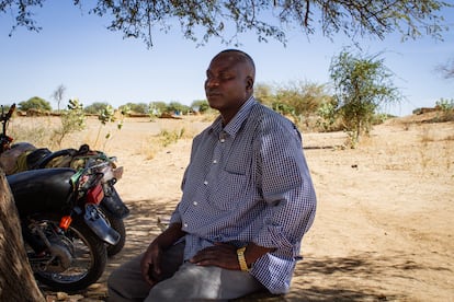 El líder comunitario Abdourahim Adam Adoul, de 36 años, durante su entrevista con EL PAÍS en el campo de refugiados de Gaga, en Chad.Lola Hierro