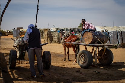 Carros tirados por burros en Adré, en la frontera entre Chad y Sudán, en diciembre de 2025.Lola Hierro