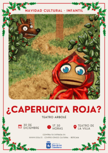 La propuesta de ARBOLÉ Teatro da la vuelta al cuento de “Caperucita Roja” y, además de advertir sobre los peligros de la vida, consigue hacer de la figura del lobo un animal más entrañable, evitando la parte más traumática de la historia. Títeres y titiriteros trabajan conjuntamente para ofrecernos una versión llena de ingenio, sorpresa y complicidad con el público.