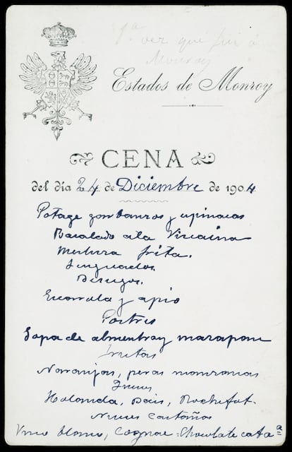 Menú servido en casa del marqués de Cerralbo el 24 de diciembre de 1904.FAM© Museo Cerralbo, Madrid