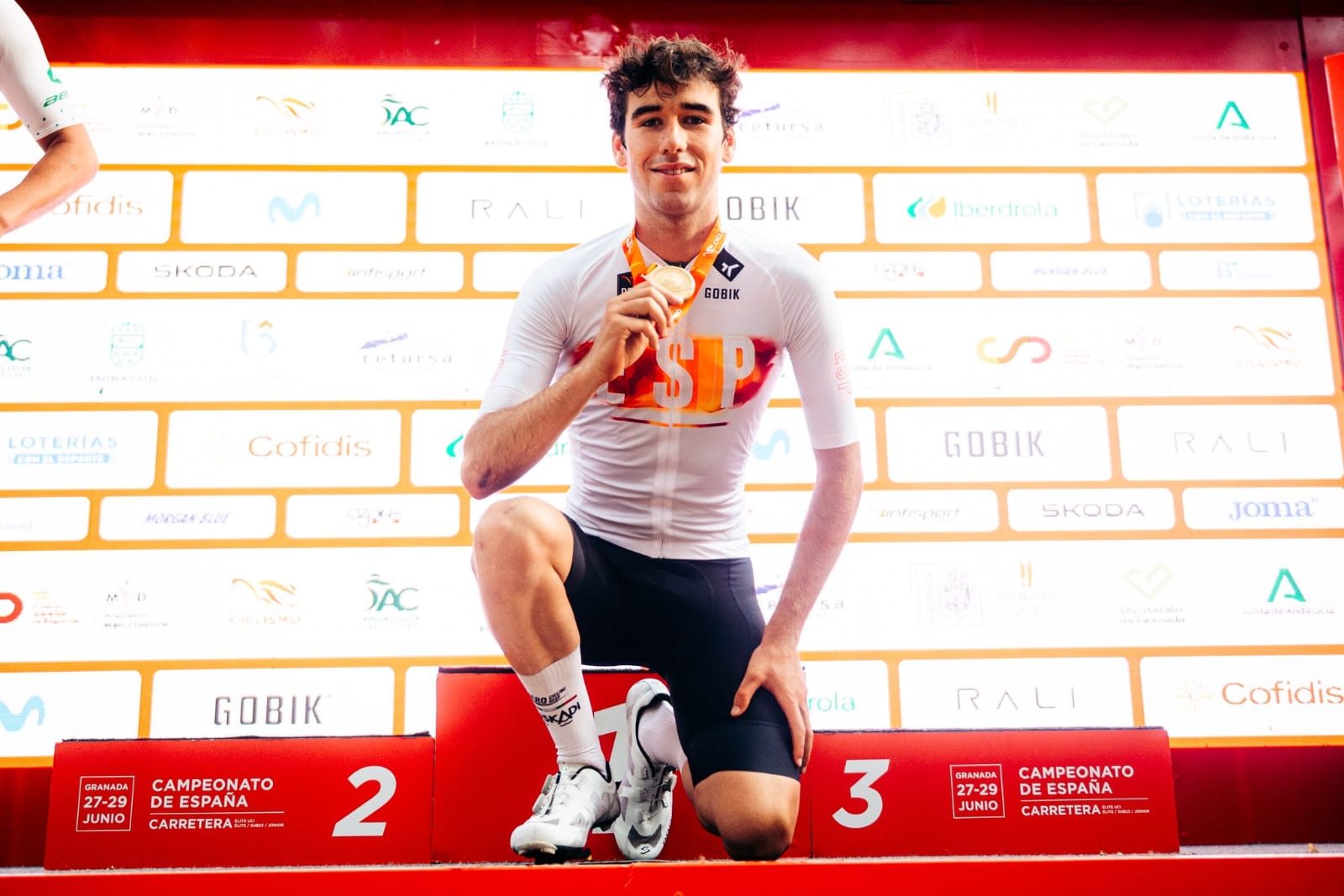 Su mejor versión llegó durante los meses de junio y julio, cuando encontró continuidad en carrera y confirmó todo el trabajo acumulado. El punto de inflexión se produjo el 28 de junio en Granada, durante el Campeonato de España sub-23, una jornada de extremo calor y gran dureza que terminó siendo decisiva en su temporada y en su futuro deportivo. «Sin duda mi mejor momento del año ha sido el campeonato de España, era algo que no me esperaba y fue un día que marcó por completo la temporada«, recuerda el propio ciclista.