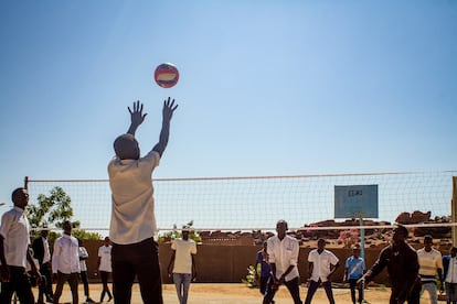 Unos estudiantes juegan al voley en el instituto de secundaria del campo de refugiados de Farchana, en el este de Chad, en diciembre de 2025.Lola Hierro