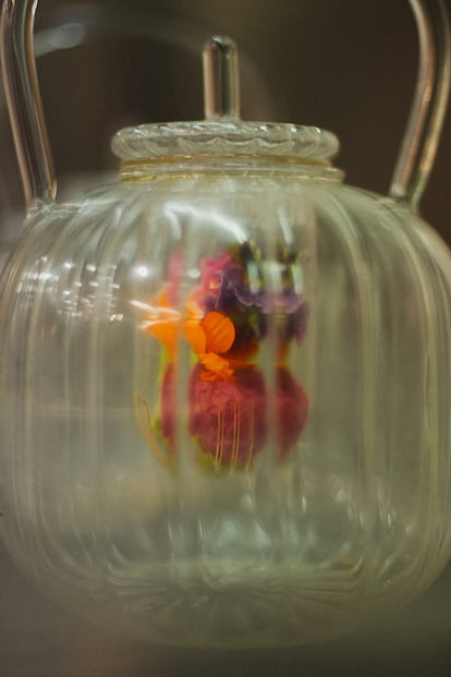 Infusión con flores cultivadas en las inmediaciones de Azurmendi, el restaurante de Eneko Atxa en Larrabetzu.Ayub El Kadmiri