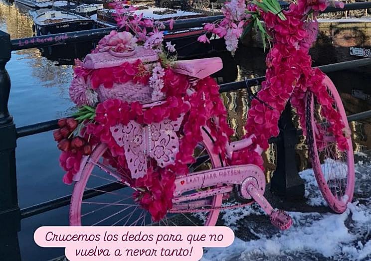 Por suerte, la cambiante meteorología holandesa estaba esta vez de su lado. El temporal ha remitido en las siguientes horas y la compañía con la que volaba le ha ofrecido una alternativa para poder recibir a Melchor, Gaspar y Baltasar en casa. «Cuando Iberia te reubica en el siguiente vuelo y la ciudad vuelve a brillar», ha publicado tres horas más tarde. La foto elegida para anunciarlo no podía ser una postal más típica de Amsterdam: una bici rosa apoyada en un puente. Y un deseo para que el guion se mantenga según lo previsto: «Crucemos los dedos para que no vuelva a nevar tanto».
