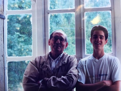 El escritor Miguel Delibes y su nieto Germán en su casa de Sedano (Burgos), en una imagen cedida.